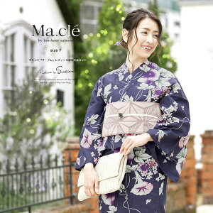 【5/1~6★クーポンで最大10%OFF】浴衣 セット レディース レトロ 浴衣セット 3点セット 紺 ネイビー アイボリー 朝顔 あさがお 紫陽花 あじさい 綿麻 兵児帯 女性 ボヌールセゾン マクレ 30代 40代 ママ 大人浴衣 フリー 【送料無料】【あす楽対応】【母の日】